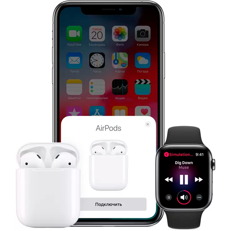 AirPods полностью изменят ваше представление об использовании беспроводных наушников. Достаньте их из футляра — и они уже готовы к работе с iPhone, Apple Watch, iPad или Mac.
